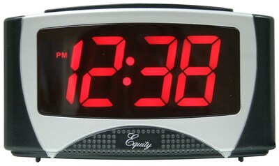 Learn more about the equity lacrosse 30228. New equity by la crosse led digital alarm clock large led display #30228 gift. Small desktop clock features beep alarm and 4 minute snooze. Black case with lcd display. One battery powers this lcd digital alarm clock from la crosse.