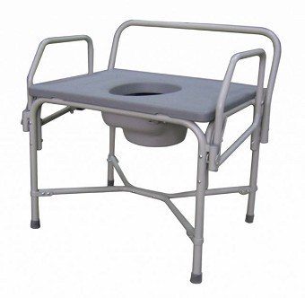 This medline commode also has a riveted and welded steel construction for stability. Multifunctional commode easily accommodates bariatric users drop arms for safe lateral patient transfers 10qt drop in bucket with handle Please enter a valid email address. Probasics bariatric commode extra wide seat, prod. The commode comes with easy to operate drop arms that accommodates transfers in and out of the commode.